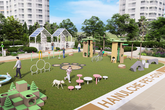 이번에 공개한 하늘채 펫짐은 기존 특화 조경상품 중 하나인 '아웃도어짐'의 시리즈 상품으로, 반려동물을 키우는 입주민들의 라이프스타일을 적극 반영해 하늘채만의 차별화된 조경 디자인을 적용한 것이 특징이다.