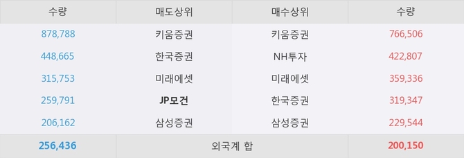 거래원 동향은 NH투자, 미래에셋, 삼성증권 등이 매수 상위 목록에 나타나고 있다. 한편, 매도 창구 상위에는 JP모건이 눈에 띄고 있다.