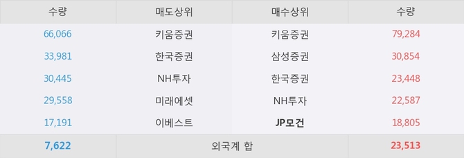거래원 동향은 NH투자, 미래에셋 등이 매도 상위 목록에 나타나고 있다. 한편, 매수 창구 상위에는 JP모건이 눈에 띄고 있다.