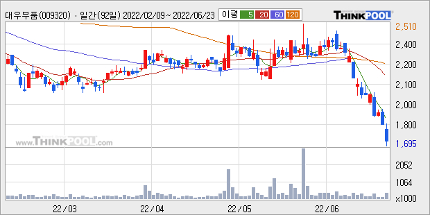 대우부품은 2021년 매출액 992억원과 영업이익 11억원을 기록했다. 전년대비 매출은 30.6% 상승했고, 영업이익은 흑자전환했다. 이 회사의 매출액 증감률과 영업이익 증감률은 각각 코스피 상위 21%, 상위 14%에 해당된다.