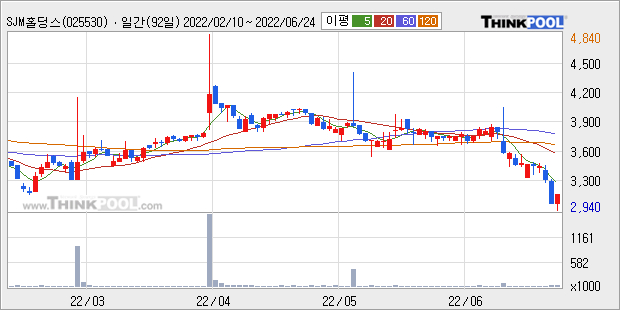 SJM홀딩스는 2021년 매출액 1497억원과 영업이익 79억원을 기록했다. 전년대비 매출은 5.7%, 영업이익은 23.4% 각각 상승했다. 이 회사의 매출액 증감률과 영업이익 증감률은 각각 코스피 하위 31%, 상위 50%에 해당된다.