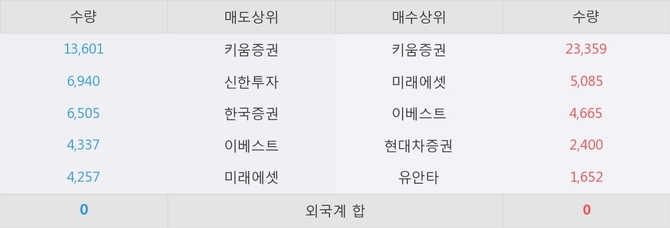 이 시각 주요 거래원은 미래에셋, 키움증권, 이베스트 등이 매수 상위 창구에 자리하고 있다.