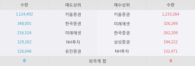 거래원 동향은 미래에셋, 삼성증권, NH투자 등이 매수 상위 목록에 나타나고 있다.