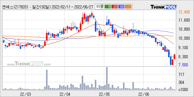 엔에스의 2021년 매출액은 전년대비 -30.6% 줄어든 462억원이고, 영업이익 역시 전년대비 -65.5% 줄어든 24억원을 기록했다. 이 회사의 매출액 증감률과 영업이익 증감률은 각각 코스닥 하위 7%, 하위 19%에 해당된다.