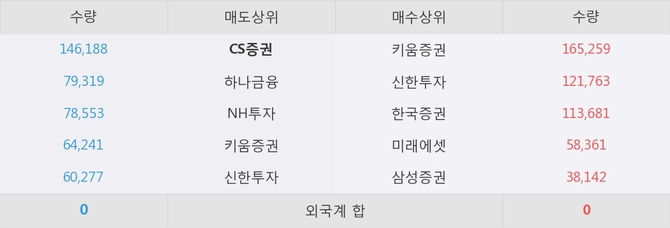 거래원 동향은 CS증권, 하나금융, NH투자 등이 매도 상위 목록에 나타나고 있다.