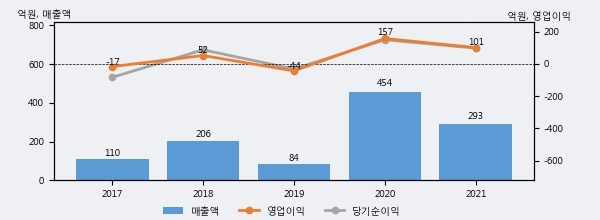 인트론바이오의 2021년 매출액은 전년대비 -35.5% 줄어든 293억원이고, 영업이익 역시 전년대비 -36.0% 줄어든 101억원을 기록했다. 이 회사의 매출액 증감률과 영업이익 증감률은 각각 코스닥 하위 6%, 하위 27%에 해당된다.