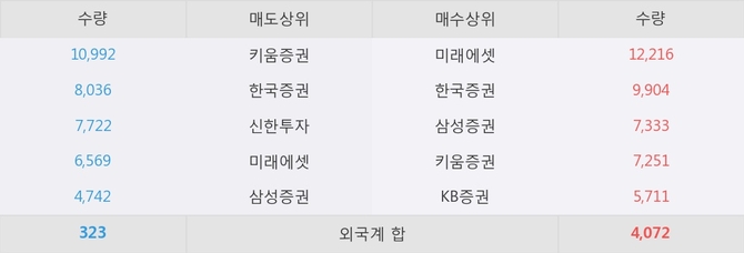 거래원 동향은 미래에셋, 삼성증권 등이 매수 상위 목록에 나타나고 있다.