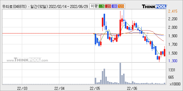 우리로는 2021년 매출액 1074억원과 영업이익 38억원을 기록했다. 전년대비 매출은 -3.2% 하락했고, 영업이익은 흑자전환했다. 이 회사의 매출액 증감률과 영업이익 증감률은 각각 코스닥 하위 23%, 상위 10%에 해당된다.