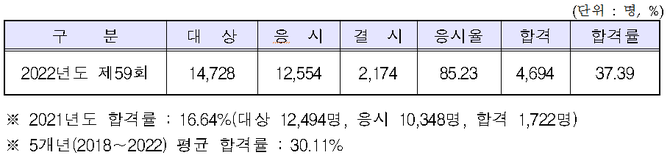 (조세금융신문=고승주 기자) 제59회 세무사 1차 시험 합격률이 37.39%인 것으로 나타났다.