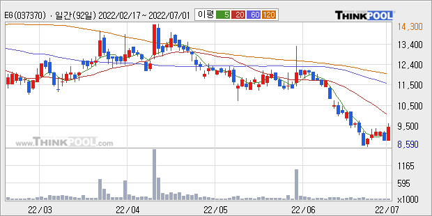 EG의 2021년 매출액은 전년대비 112.4% 늘어난 957억원이고, 영업이익은 흑자전환해서 76억원을 기록했다. 이 회사의 매출액 증감률과 영업이익 증감률은 각각 코스닥 상위 5%, 상위 12%에 해당된다.