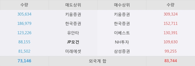 거래원 동향은 NH투자, 삼성증권 등이 매수 상위 목록에 나타나고 있다. 한편, 매도 창구 상위에는 JP모건이 눈에 띄고 있다.