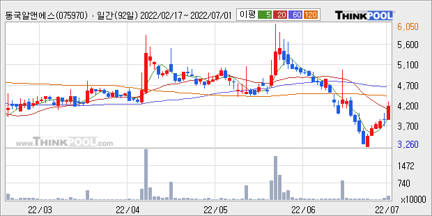 동국알앤에스는 2021년 매출액 1041억원과 영업이익 28억원을 기록했다. 전년대비 매출은 11.5% 상승했고, 영업이익은 -34.2% 하락했다. 이 회사의 매출액 증감률과 영업이익 증감률은 각각 코스닥 하위 47%, 하위 27%에 해당된다.