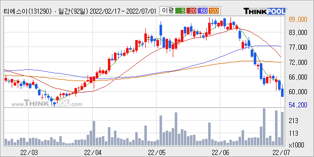 티에스이의 2021년 매출액은 전년대비 7.8% 늘어난 3077억원이고, 영업이익 또한 전년대비 27.9% 늘어난 546억원을 기록했다. 이 회사의 매출액 증감률과 영업이익 증감률은 각각 코스닥 하위 39%, 상위 46%에 해당된다.