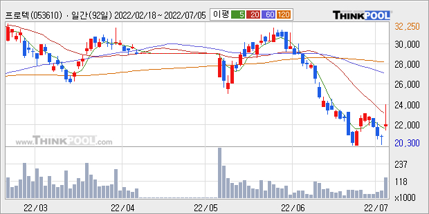 프로텍의 2021년 매출액은 전년대비 101.2% 늘어난 1740억원이고, 영업이익 또한 전년대비 226.8% 늘어난 503억원을 기록했다. 이 회사의 매출액 증감률과 영업이익 증감률은 각각 코스닥 상위 5%, 상위 12%에 해당된다.