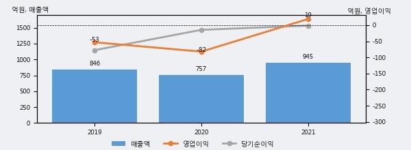 최근 실적을 살펴보면 2021년 매출액이 최근 3년 중 가장 높은 실적을 기록했음을 알 수 있다. 이전 최고 실적이었던 2019년 보다도 11.7%(99억 2천만원) 늘어난 것으로 나타났다.