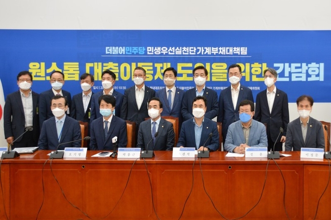 이날 오전 더불어민주당 민생우선실천단 산하 가계부채대책팀은 국회 본청 더불어민주당 원내대표회의실에서 ‘상환부담 완화를 위한 원스톱 대출이동제 도입 간담회’를 개최했다.