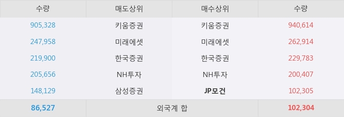 거래원 동향은 JP모건, 미래에셋, NH투자 등이 매수 상위 목록에 나타나고 있다.