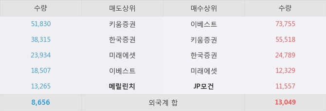 거래원 동향은 JP모건, 미래에셋이 매수 상위 목록에 나타나고 있다. 한편, 매도 창구 상위에는 메릴린치가 눈에 띄고 있다.