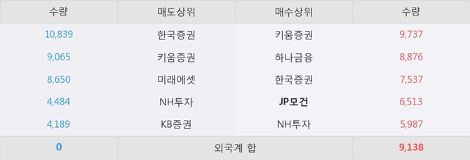 거래원 동향은 JP모건, 하나금융, NH투자 등이 매수 상위 목록에 나타나고 있다.
