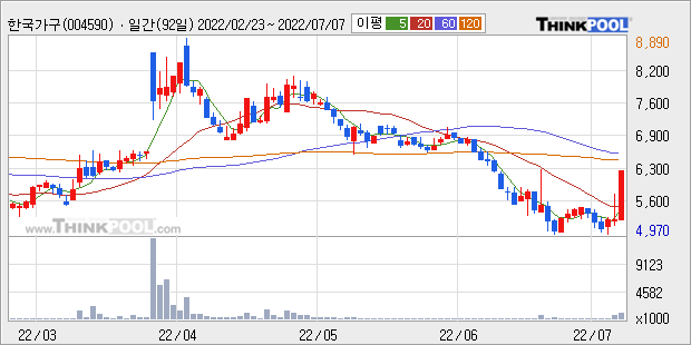 한국가구의 2021년 매출액은 930억으로 전년대비 23.3% 상승했고, 영업이익 또한 149억으로 전년대비 42.4% 상승했다. 이 회사의 매출액 증감률과 영업이익 증감률은 각각 코스닥 상위 35%, 상위 41%에 해당된다.