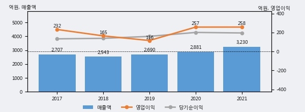 최근 3년간의 실적을 살펴보면 안정적 성장세를 보이고 있다. 최근 3년간 매출로 볼 때 매년 증가하고 있고 그 증가폭도 확대되고 있다.