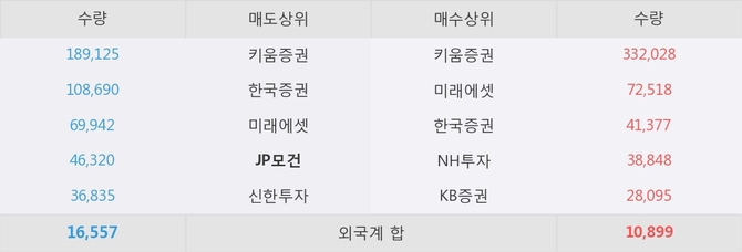 거래원 동향은 미래에셋, NH투자 등이 매수 상위 목록에 나타나고 있다. 한편, 매도 창구 상위에는 JP모건이 눈에 띄고 있다.