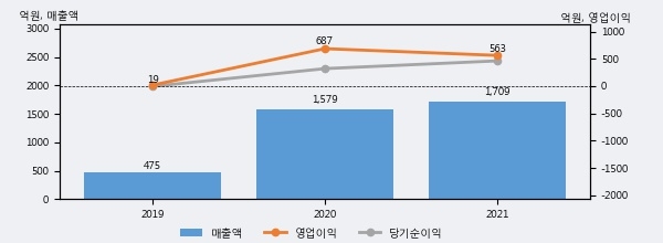 최근 실적을 살펴보면 2021년 매출액이 최근 3년 중 가장 높은 실적을 기록했음을 알 수 있다. 이전 최고 실적이었던 2020년 보다도 8.2%(129억 5천만원) 늘어난 것으로 나타났다.