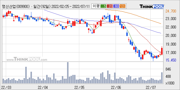 차트상 주가의 흐름은 중기적으로 역배열을 보이고 있지만 단기적으로 반등흐름이 나오면서 20일선을 넘어서는 모습이다.