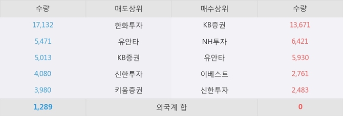 현재 거래원 동향은 한화투자, 유안타, KB증권 등이 매도 상위 목록에 나타나고 있다.