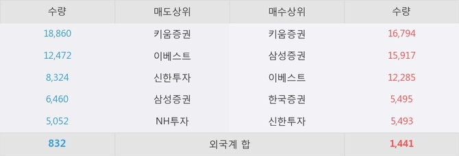 이 시각 주요 거래원은 삼성증권, 키움증권, 이베스트 등이 매수 상위 창구에 자리하고 있다.