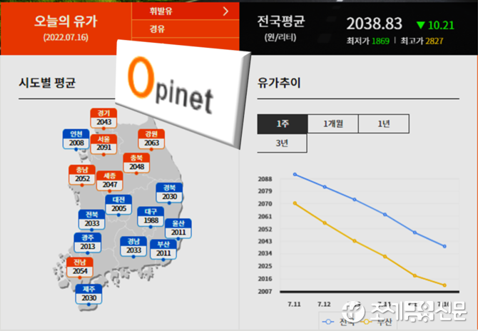 한편 이번주 국제 원유 가격은 인플레이션에 따른 세계 경기 침체 우려와 국제에너지기구(IEA)·석유수출국기구(OPEC)의 석유 수요 전망치 하향 등의 영향으로 지난주에 이어 하락세를 보였다.