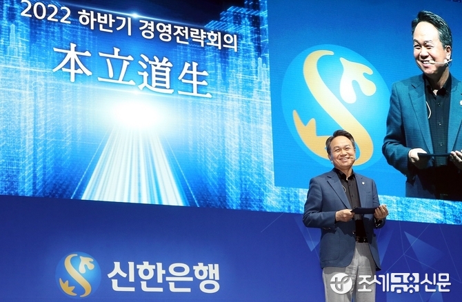 (조세금융신문=김종태 기자) 신한은행은 지난 15일 인천 송도 송도컨벤시아에서 진옥동 은행장을 비롯한 임원, 본부장, 부서장 등 1천여명이 참석한 가운데 '2022 하반기 경영전략회의'를 열었다.