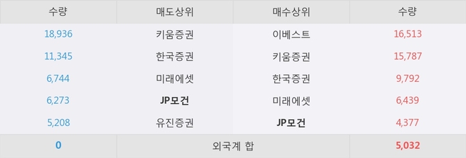 거래원 동향은 JP모건, 미래에셋이 매수 상위 목록에 나타나고 있다. 한편, 매도 창구 상위에는 JP모건이 눈에 띄고 있다.