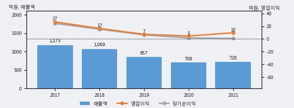 모헨즈는 2021년 매출액 728억원과 영업이익 10억원을 기록했다. 전년대비 매출은 2.9%, 영업이익은 108.5% 각각 상승했다. 이 회사의 매출액 증감률과 영업이익 증감률은 각각 코스닥 하위 31%, 상위 26%에 해당된다.