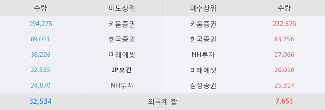 거래원 동향은 NH투자, 미래에셋, 삼성증권 등이 매수 상위 목록에 나타나고 있다. 한편, 매도 창구 상위에는 JP모건이 눈에 띄고 있다.