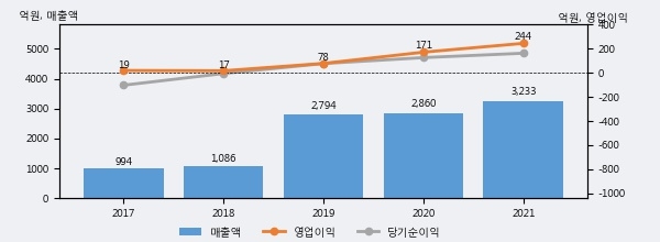 최근 3년간의 실적을 살펴보면 안정적 성장세를 보이고 있다. 최근 3년간 매출로 볼 때 매년 꾸준히 증가하고 있고 그 증가폭도 확대되고 있다.