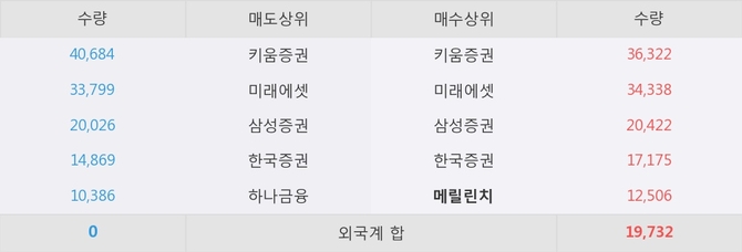 거래원 동향은 메릴린치, 미래에셋, 삼성증권 등이 매수 상위 목록에 나타나고 있다.