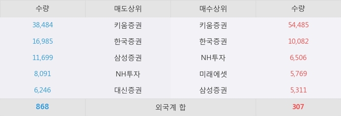 거래원 동향은 NH투자, 미래에셋, 삼성증권 등이 매수 상위 목록에 나타나고 있다.