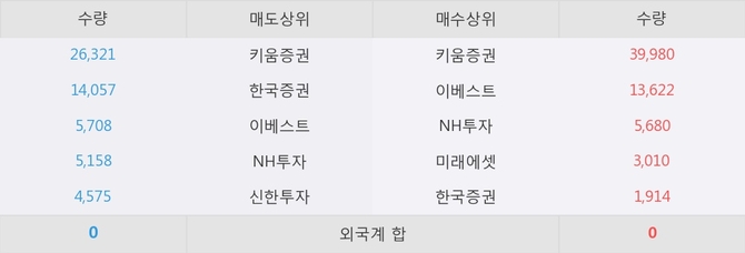 아직까지 외국계 증권사 창구를 통한 매매는 발생하지 않고 있다. 그리고 이 시간 이베스트가 매수창구상위에 올라있는 종목은 이 종목 이외에도 캐리소프트, 미래에셋대우스팩3호 등이 있다.