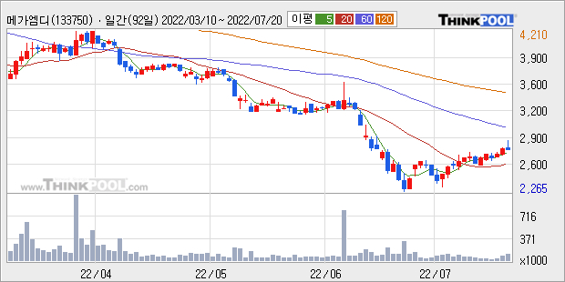 메가엠디는 2021년 매출액 794억원과 영업이익 77억원을 기록했다. 전년대비 매출은 -3.7% 하락했고, 영업이익은 8.2% 상승했다. 이 회사의 매출액 증감률과 영업이익 증감률은 각각 코스닥 하위 22%, 하위 45%에 해당된다.