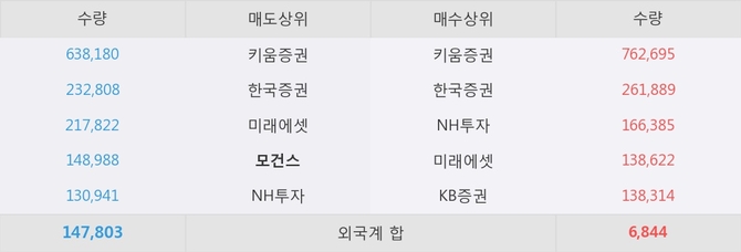 거래원 동향은 NH투자, 미래에셋 등이 매수 상위 목록에 나타나고 있다. 한편, 매도 창구 상위에는 모건스가 눈에 띄고 있다.