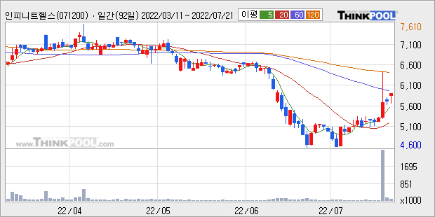 인피니트헬스케어의 2021년 매출액은 전년대비 11.6% 늘어난 782억원이고, 영업이익 또한 전년대비 1.9% 늘어난 74억원을 기록했다. 이 회사의 매출액 증감률과 영업이익 증감률은 각각 코스닥 하위 47%, 하위 41%에 해당된다.