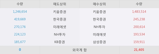 거래원 동향은 NH투자, 미래에셋, 삼성증권 등이 매수 상위 목록에 나타나고 있다.