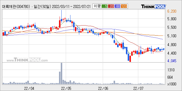대륙제관의 2021년 매출액은 전년대비 11.2% 늘어난 2359억원이고, 영업이익은 전년대비 -51.6% 줄어든 76억원을 기록했다. 이 회사의 매출액 증감률과 영업이익 증감률은 각각 코스닥 하위 46%, 하위 23%에 해당된다.