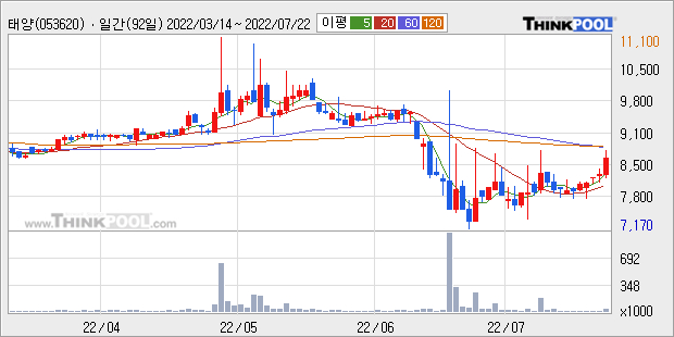태양의 2021년 매출액은 1500억으로 전년대비 6.0% 상승했고, 영업이익은 25억으로 전년대비 -72.8% 하락했다. 이 회사의 매출액 증감률과 영업이익 증감률은 각각 코스닥 하위 36%, 하위 18%에 해당된다.