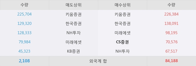 거래원 동향은 CS증권, 미래에셋, NH투자 등이 매수 상위 목록에 나타나고 있다.