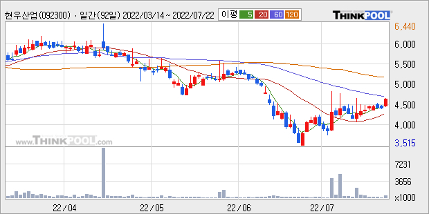 현우산업의 2021년 매출액은 전년대비 20.5% 늘어난 1843억원이고, 영업이익 또한 전년대비 6,766.7% 늘어난 41억원을 기록했다. 이 회사의 매출액 증감률과 영업이익 증감률은 각각 코스닥 상위 38%, 상위 1%에 해당된다.