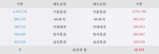 거래원 동향은 NH투자, 미래에셋, 삼성증권 등이 매수 상위 목록에 나타나고 있다.