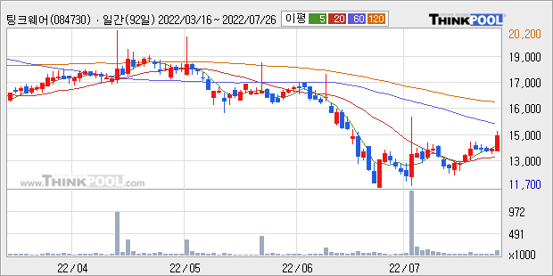팅크웨어는 2021년 매출액 2254억원과 영업이익 125억원을 기록했다. 전년대비 매출은 14.1% 상승했고, 영업이익은 -0.1% 하락했다. 이 회사의 매출액 증감률과 영업이익 증감률은 각각 코스닥 상위 49%, 하위 40%에 해당된다.