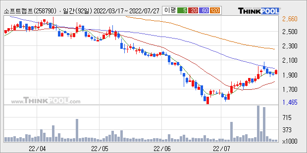 소프트캠프는 2021년 매출액 206억원과 영업이익 11억원을 기록했다. 전년대비 매출은 8.6% 상승했고, 영업이익은 -52.9% 하락했다. 이 회사의 매출액 증감률과 영업이익 증감률은 각각 코스닥 하위 42%, 하위 22%에 해당된다.